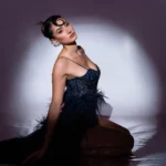 Su trabajo no se limita a vestir: esculpe. La silueta aparece controlada, casi arquitectónica, como si cada costura estuviera ahí para guiar el cuerpo hacia una versión más nítida, más intensa, de sí mismo. No hay exceso gratuito: hay intención. Y, sobre todo, hay un dramatismo que no necesita volumen para hacerse sentir.